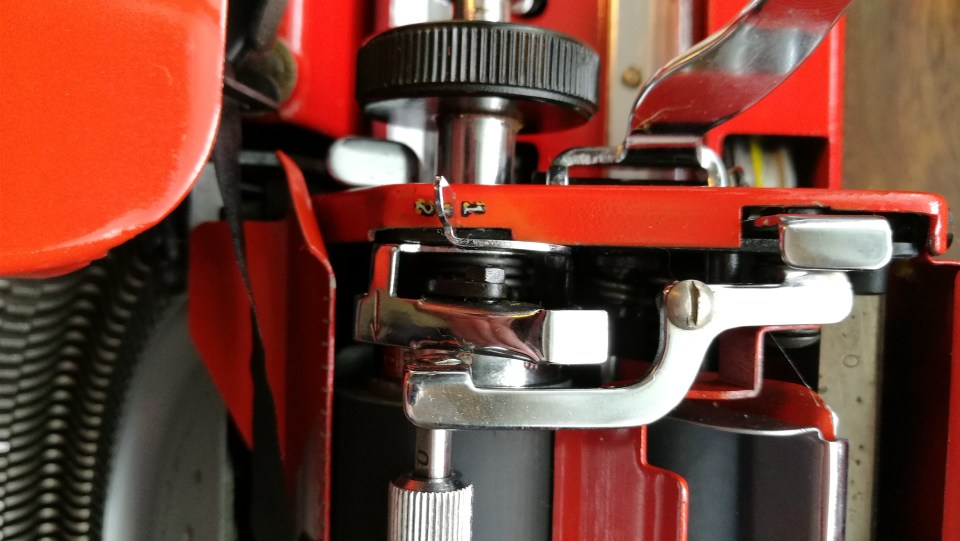 I had to learn that, as the machine was designed without a baseplate, it will not work on a felt and wool pad, and must remain on the base of the box – see fourth picture above. That’s okay, but I’ve put a rubber mat under the base to stop it sliding or scratching the table surface. Again, thanks to the shop for setting me straight on that.