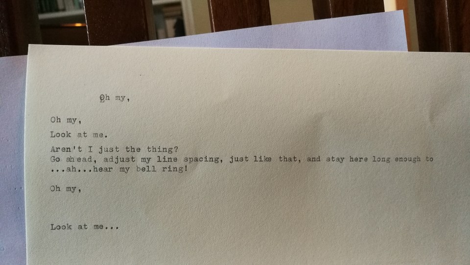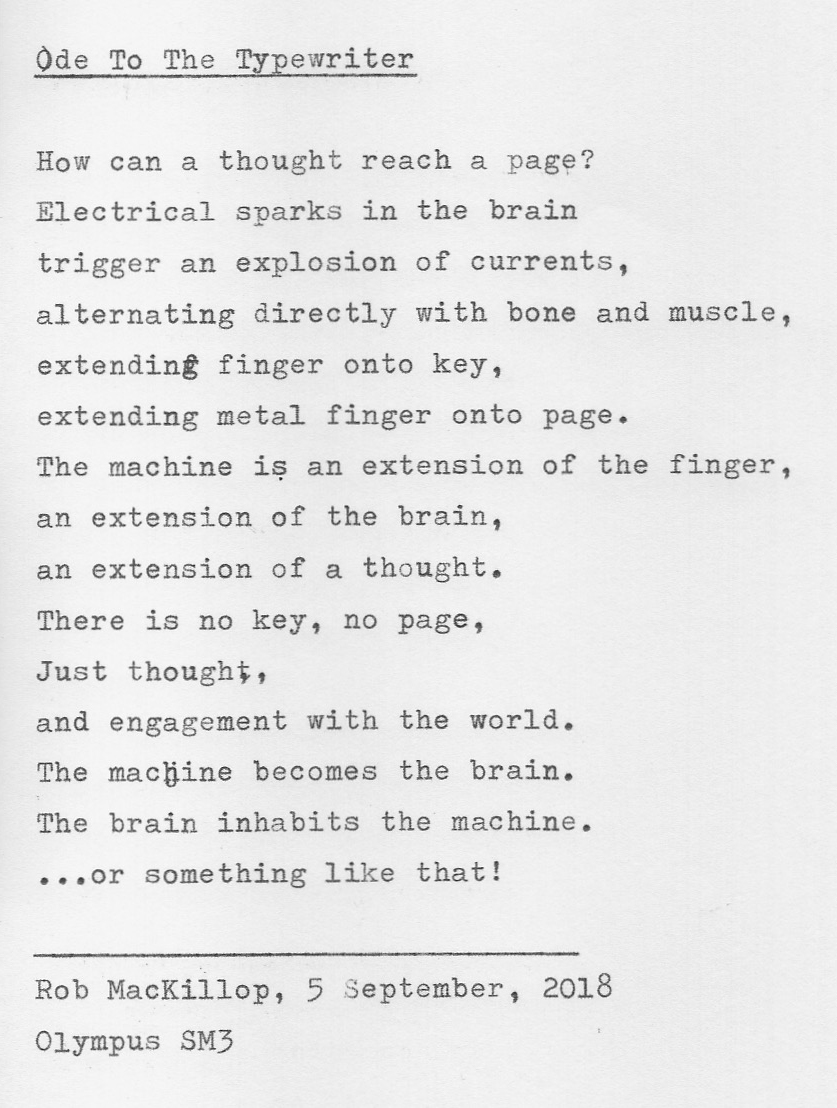 As mentioned before, every new typewriter in our house starts with a poem, usually a bad one, as my mind is taken up with too many things when faced with a new typewriter. This machine has clocked up two poems, the first when it first arrived, of course, the second after returning from Tom’s work on it. In both events, the poem turned out bad, but let’s not worry about that.