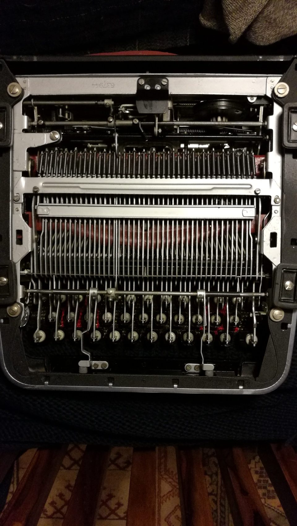 I recently received a reconditioned platen for my own SM3, which is brown, but at least it’s as attractive a brown as brown can probably be. It hasn’t been installed yet because I’m not mechanically inclined and I can’t understand the broken ESL tech-speak of the Olympia service manual, which also references parts by numbers on diagrams that I don’t have. I’m hoping it makes a difference. This SM3 was by far the loudest manual typewriter I’ve used–every keystroke sounded like a flyswatter hitting a plastic drum.