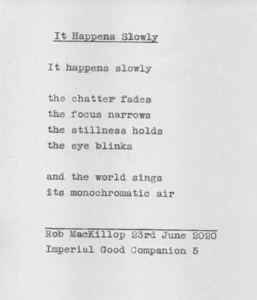 And tonight, just at the dawn of midnight, a poem emerged that gives some inkling of what Cartier Bresson called The Decisive Moment. The mechanical eye in step with my seeing eye, while for just a moment my mind had stilled.