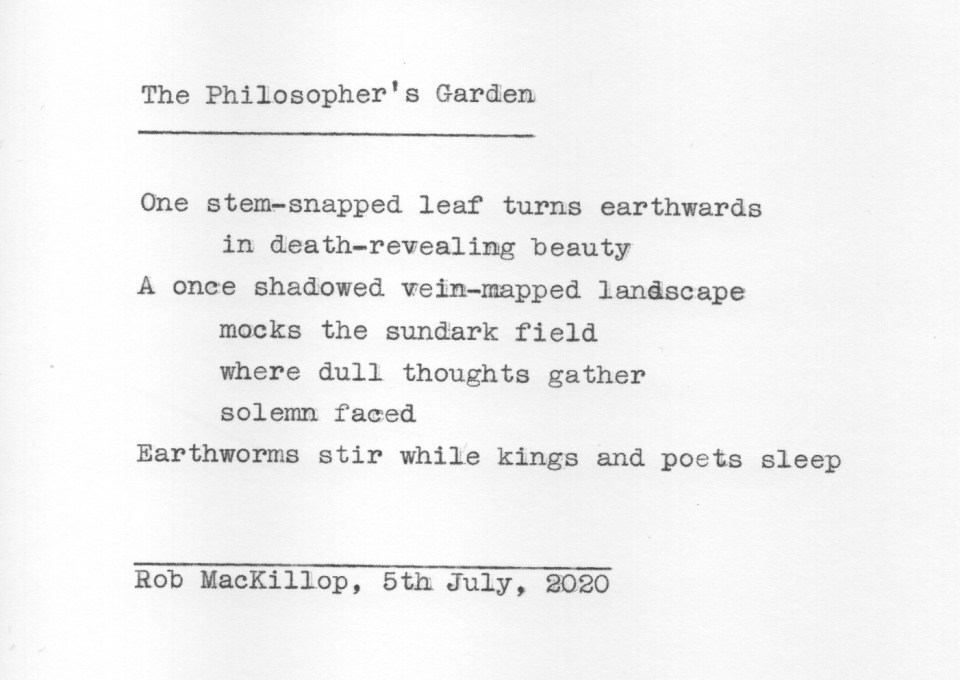 The poem is fresh from my imagination, and might well be played with some more. The last line obliquely references Hamlet’s meditation on worms and kings, while the leaf had me meditating on the nature of thought in the more shadowed areas of one’s mind.